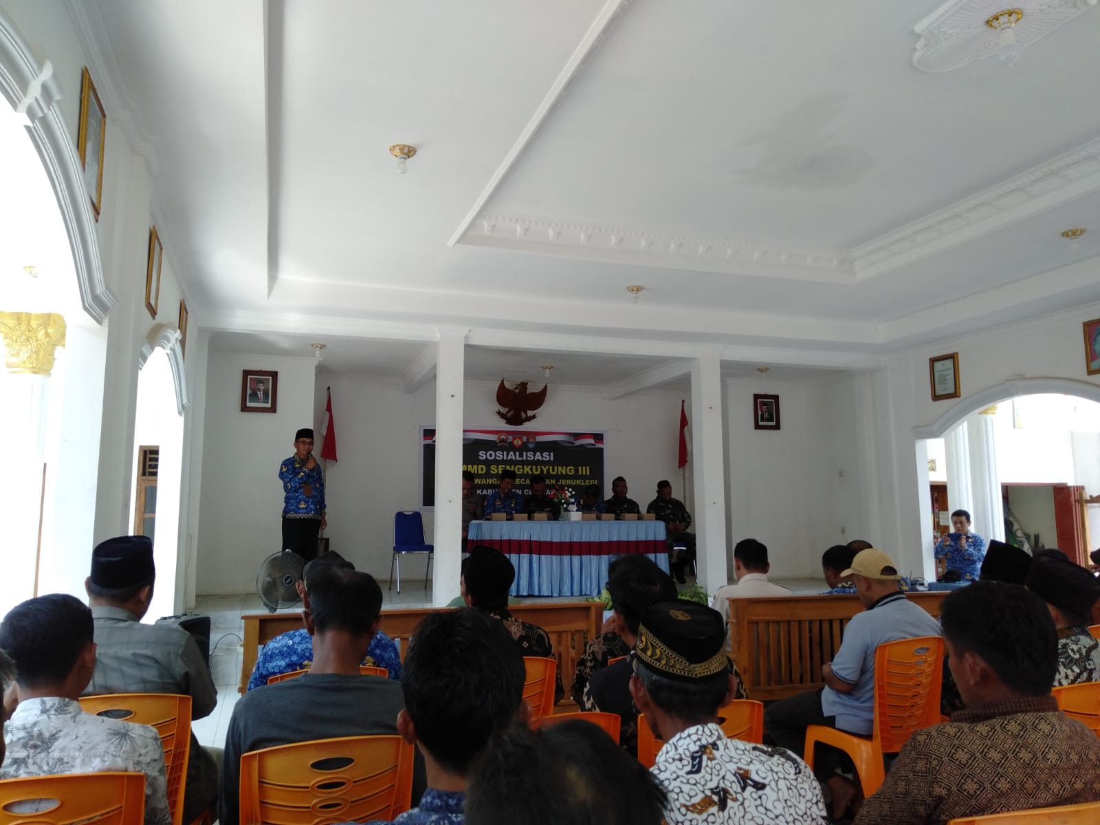 Untuk meningkatkan pemahaman masyarakat tentang program TMMD, Kodim 0703/Cilacap bersama berbagai instansi terkait melaksanakan sosialisasi TNI Manunggal Membangun Desa (TMMD) Sengkuyung Tahap III di Balai Desa Sawangan, Kecamatan Jeruklegi, Kabupaten Cilacap, Rabu (17/07/2024).