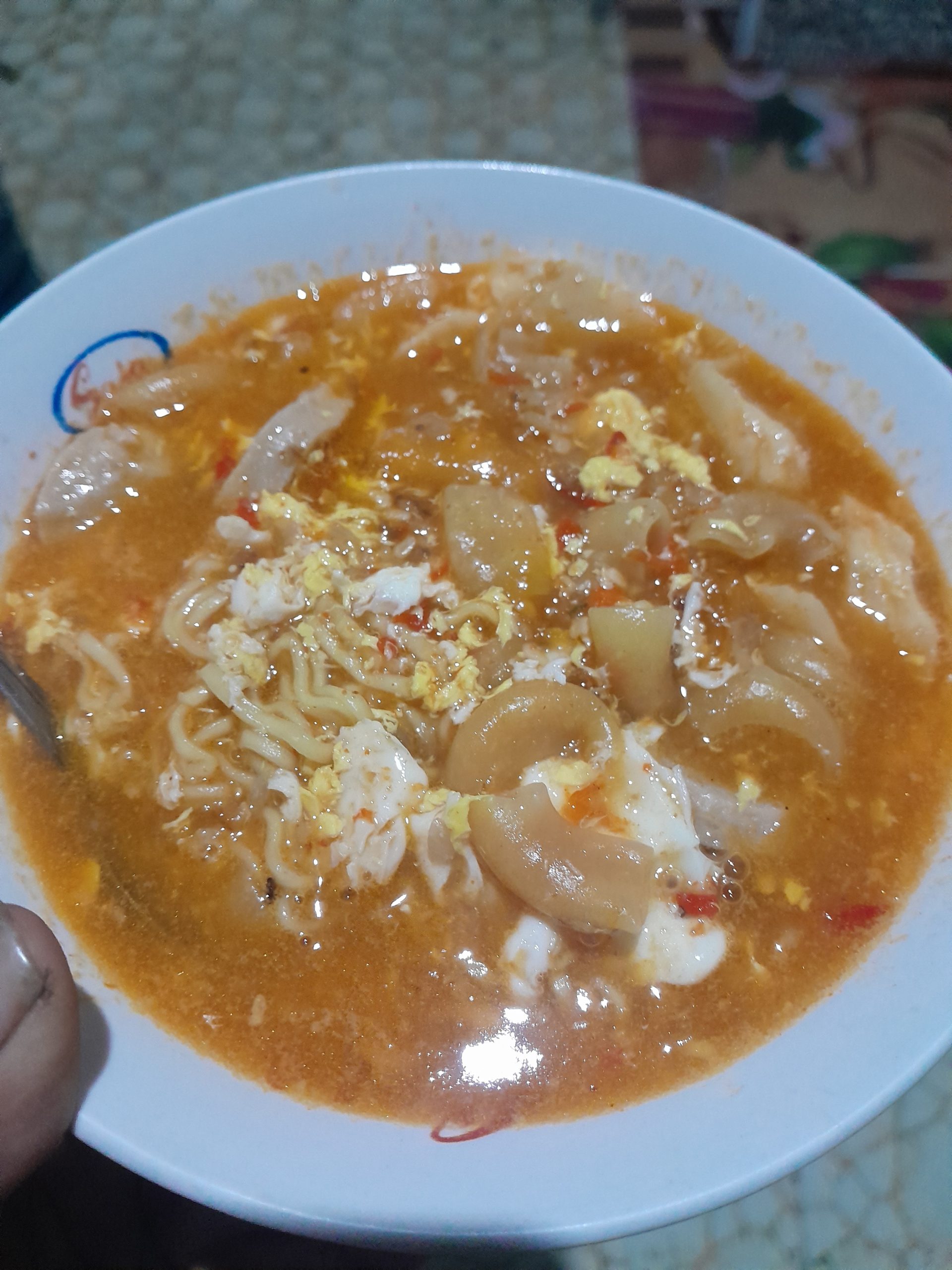 Setelah semua bahan matang, cek rasa dan sesuaikan dengan selera. Jika sudah pas, angkat dan sajikan seblak di dalam mangkuk.