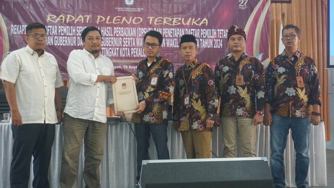 Komisi Pemilihan Umum (KPU) Kota Pekalongan menetapkan Daftar Pemilih Sementara Hasil Perbaikan (DPSHP) dan Daftar Pemilih Tetap (DPT) sebanyak 232.064 orang untuk menyongsong Pemilihan Kepala Daerah (Pilkada) Kota Pekalongan pada Rabu, 27 November 2024. Penetapan DPSHP dan DPT tingkat Kota Pekalongan ini didapati melalui Rapat Pleno Terbuka KPU yang dilaksanakan di Aula KPU setempat pada Rabu (18/9/2024).